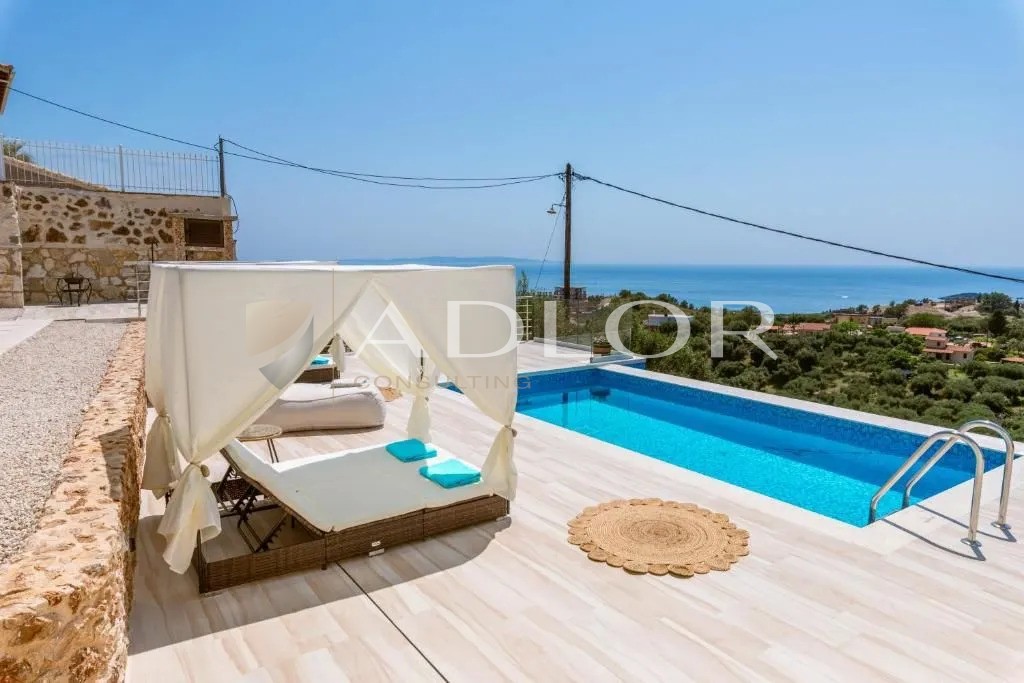 Luxuriöse, möblierte Neubauvilla mit 110 m² auf einem 500 m² großen Grundstück mit uneingeschränktem Meerblick, Syvota, Korfu und Paxos, zu verkaufen.