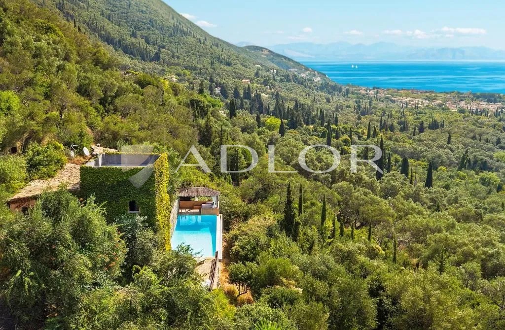 Villa (273 m²) mit einer gelungenen Kombination aus traditioneller und moderner Architektur auf einem großzügigen Grundstück von 4.608 m² mit atemberaubendem Blick auf das Ionische Meer und die umliegenden Berge.
