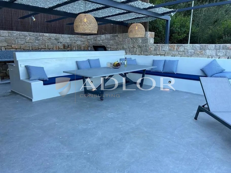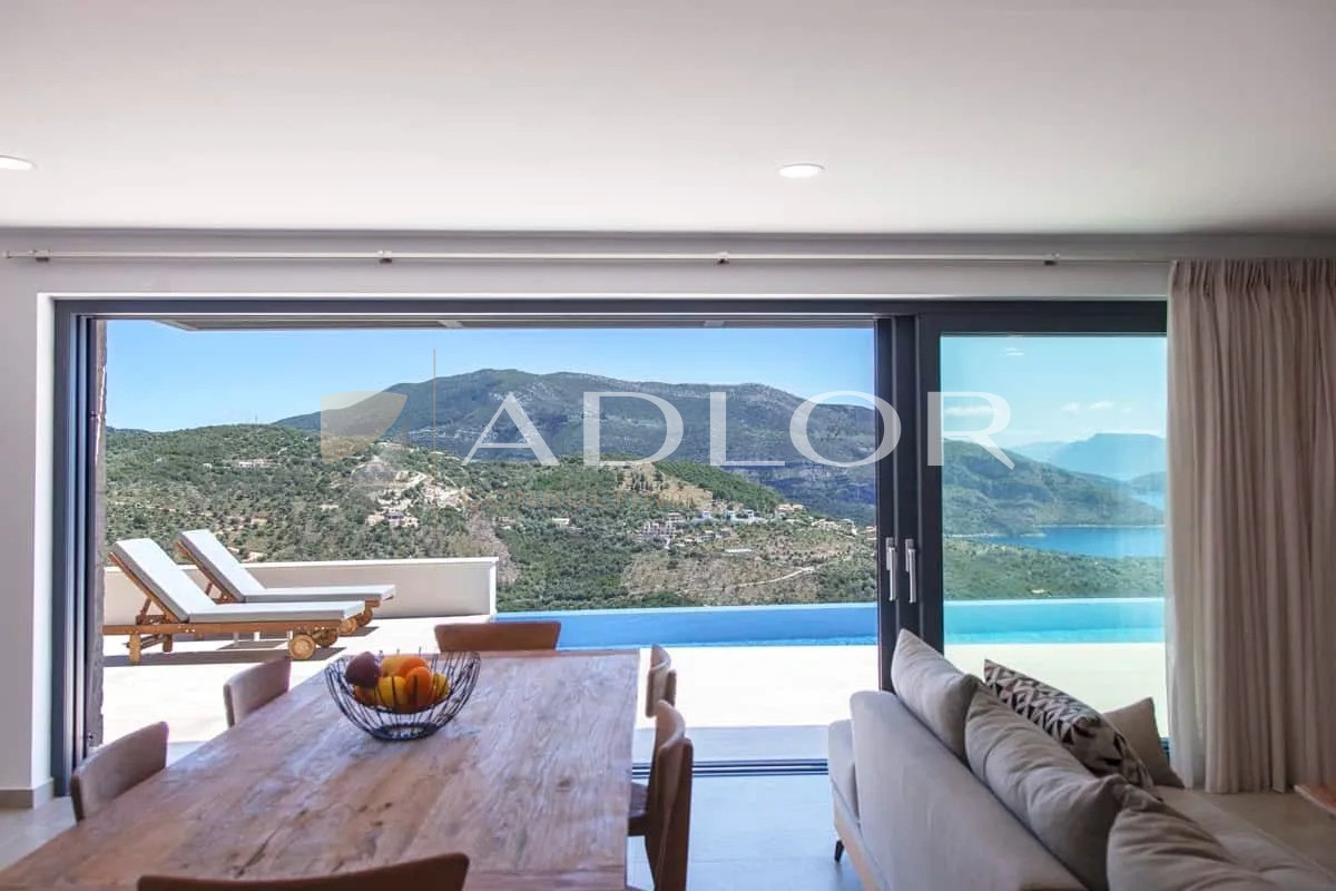 Zwei luxuriöse, identische Neubauvillen mit jeweils 136 m² Wohnfläche, Baujahr 2020, bieten einen unverbauten Blick auf das Meer und die benachbarten Ionischen Inseln.